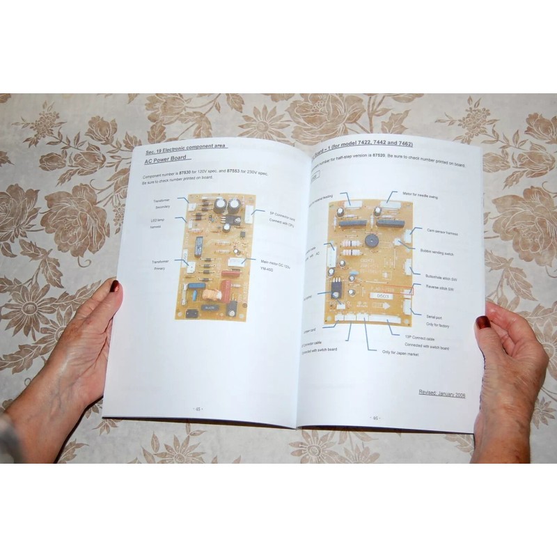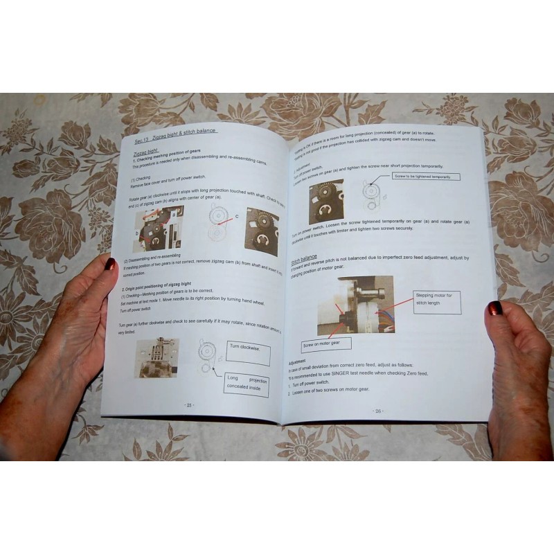 This listing is for a professional reproduction of the Singer Manufacturing Co. Service Manual for classes 7420, 7430, 7440, 7460, Sewing Machines. This is NOT a standard "Xerox" copy of the Singer manual! It is professionally printed, in full color, on the same heavy-weight brilliant-white paper as the original Singer manual! It is super clean, the text and the illustrations are very sharp, and it is nearly identical in size and in paper type to the original Singer manual. This manual is not a bunch of pages stapled at the top corner. This manual is professionally bound, just like the original Singer manual.