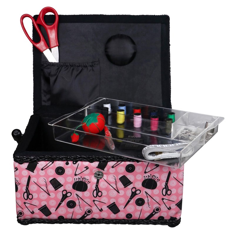 - Todo lo que necesita para proyectos de costura dentro de una canasta de moda de alta calidad.