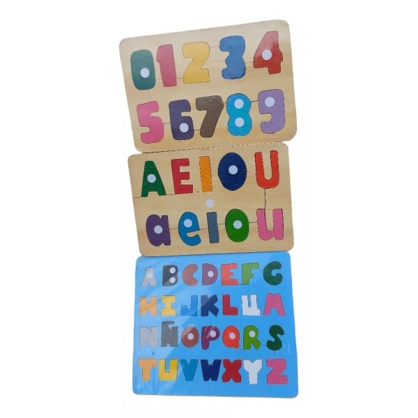 Singex Kit Rompecabezas Números Vocales Abecedario Madera Artesanal