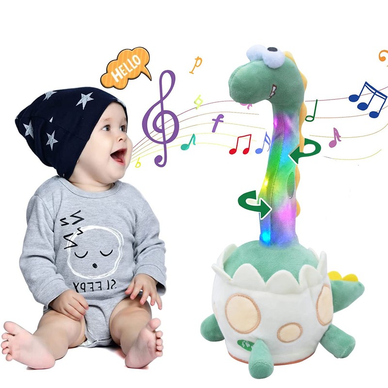 - ✅【Funny Talking Dinosaur Plush Toy】This Plush baby toy can singing, dancing, talking, imitating, recording and glowing, Large cute eyes, funnily long neck and glowing in the dark, cheerful dancing, loud music. These cacti that can sing and dance are the best companions to bring joy to children.