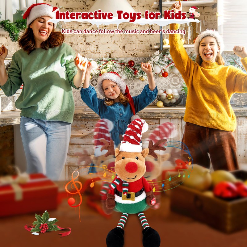 - Christmas decoration plush toys: The singing, dancing Christmas elk is an interactive toy for children, equipped with the functions of imitating, singing, dancing and repeating what is said. This Christmas reindeer plush toy has a vibrant appearance and beautiful colours, exquisite details and fun features, attracts children's attention and gives children hours of fun.