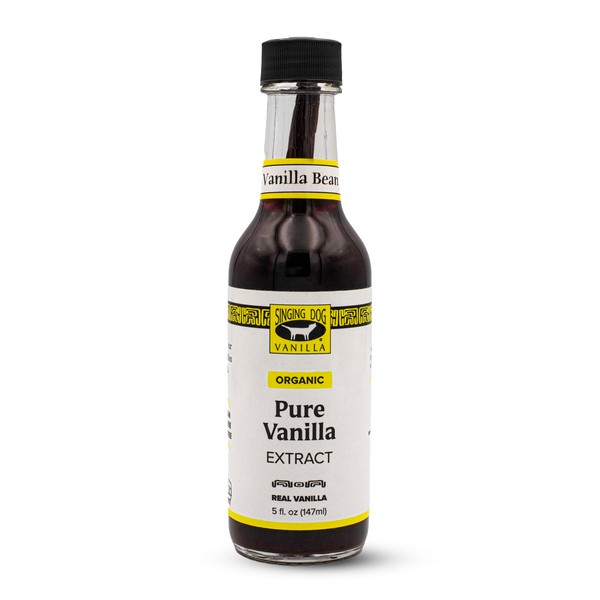 Singing Dog Vanilla, Organic Pure Vanilla Extract, 5 Fluid Ounce Bottle, Whole Vanilla Bean Inside
