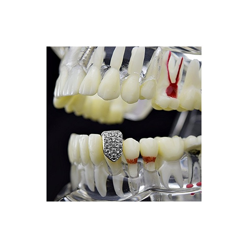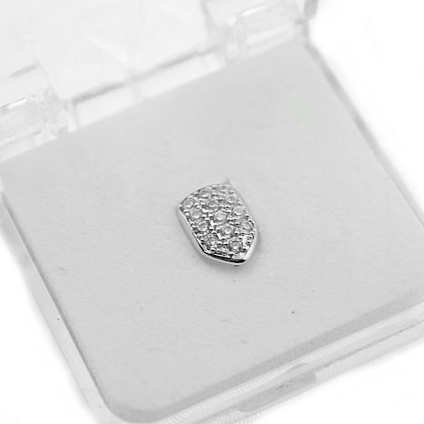 Single Cap Grillz CZ Silver Tone Cubic Zirconia Lower Tooth Micro Pave Iced Bling Teeth