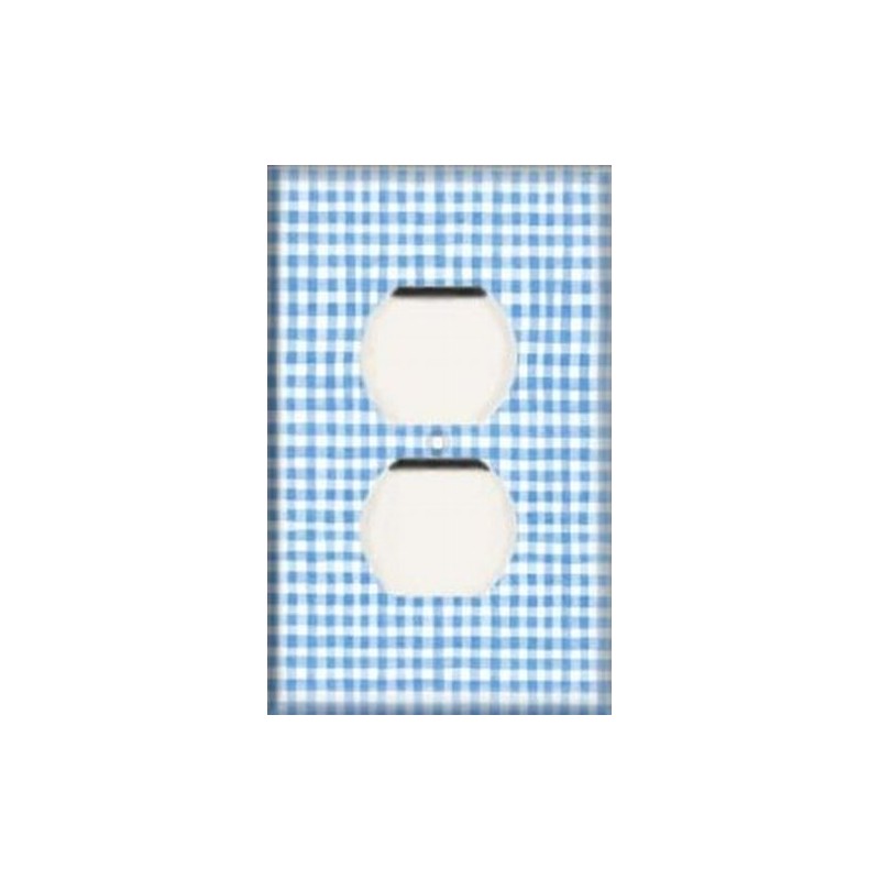 Single Duplex Outlet Cover Plate - Blue Gingham