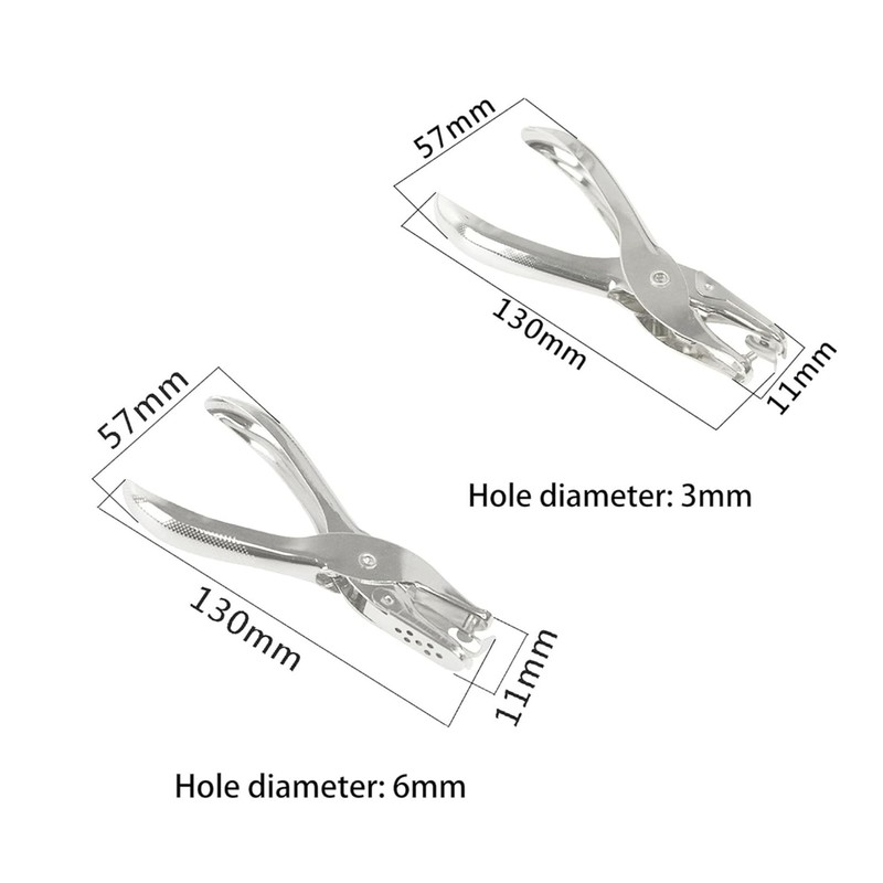 • HIGH QUALITY - Made of metal material, the hole punches have a high durability. Easy to grip, textured handles and a durable jaw provide comfort and prevent rapid rusting. In addition, different hole diameters of 3 mm and 6 mm offer flexibility for different requirements.