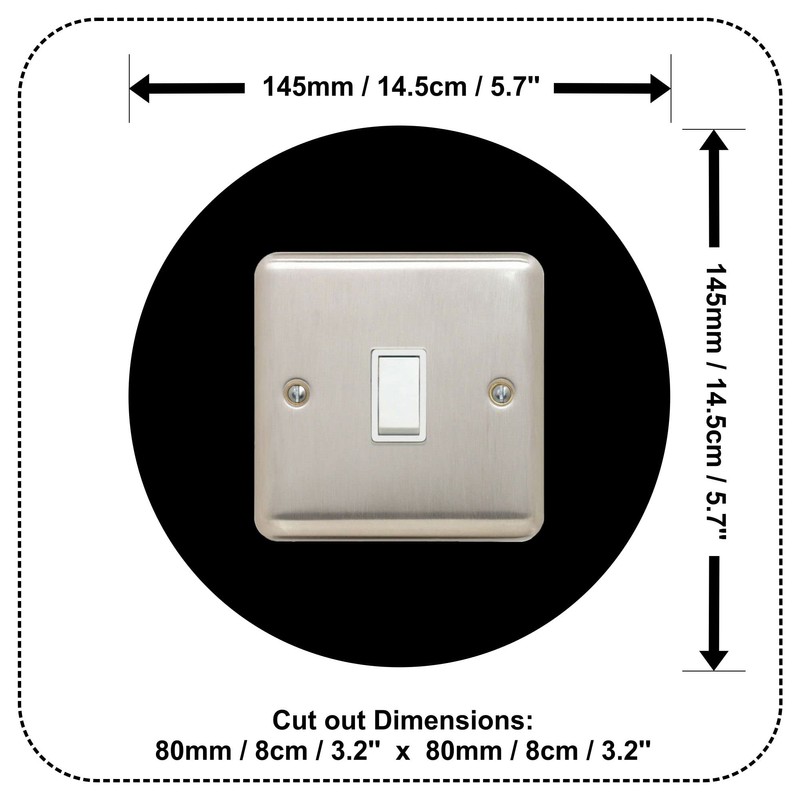 • Double socket surround: 145mm x 145mm with 80mm x 80mm cut out and 30mm border