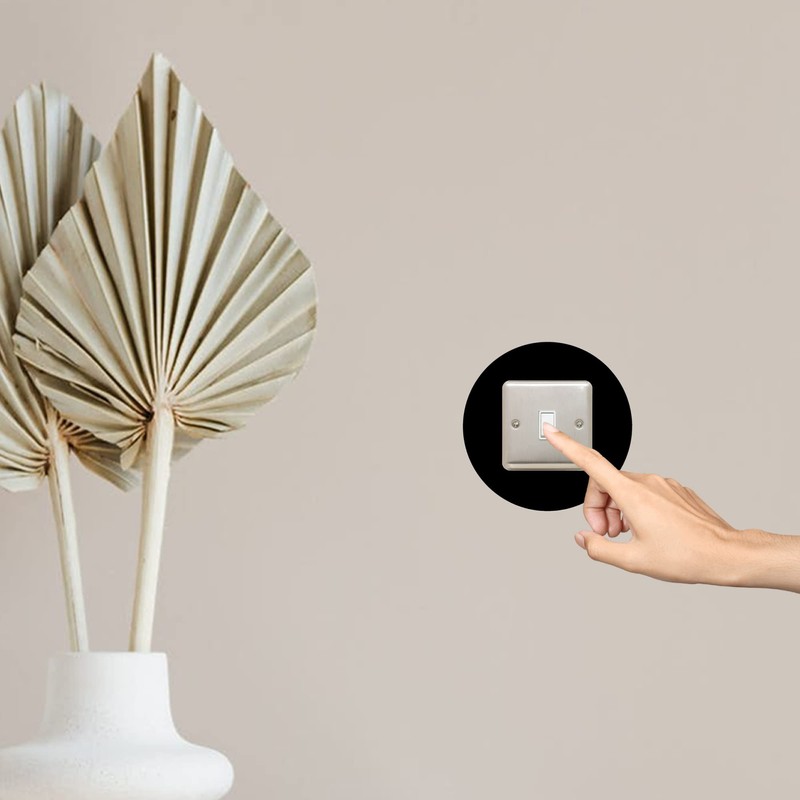 Single Light Switch Surround | Round | Acrylic Back Panel or Finger Plate | Plug Easy to Fit Comes with Step by Step Instructions, Colour:Black