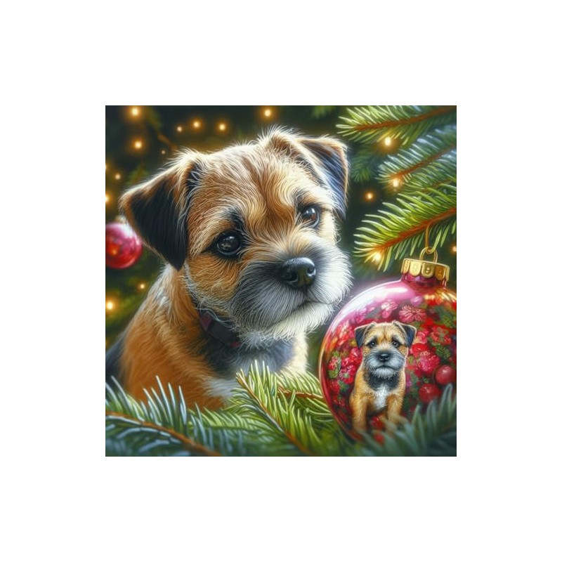 Single Luxury Border Terrier Christmas Card (BAU) B