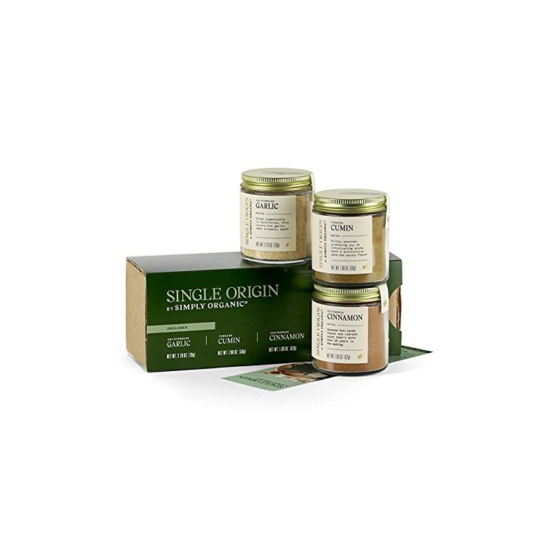 Single Origin by Simply Organic Spice Set | Californian Garlic, Turkish Cumin, Vietnamese Cinnamon | Certified Organic, Kosher, Non-irradiated | 3-Pack