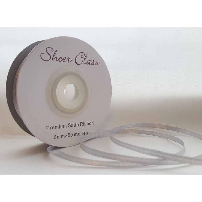 single roll of Silver Double faced Satin Ribbon 3mm, 10mm, 16mm, 25mm widths (3mm x 50M)