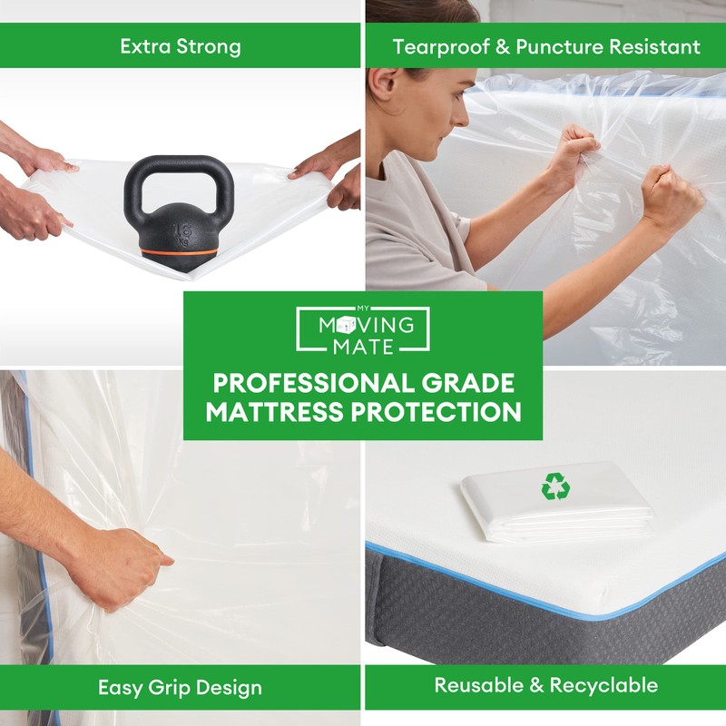 - HEAVY DUTY AND TEARPROOF - Unlike other brands, My Moving Mate uses the highest quality 5 mil 500 gauge LDPE material and 3D heat-sealed gussets to ensure your single mattress stays protected both in storage and while moving house.