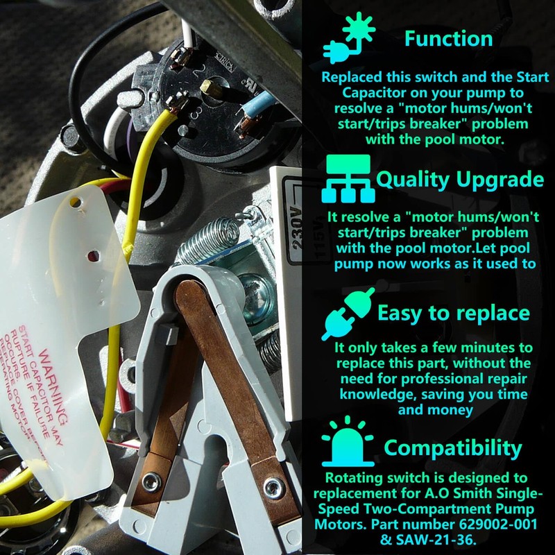- [Compatible With]: This single speed rotating switch part is specifically designed to be compatible with A.O Smith Pumps, ensuring a precise fit and optimal functionality.