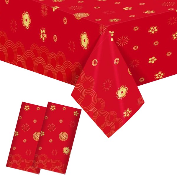 SINGOMON 2 Packs Chinese Red Tablecloth Red Table Cloths Rectangular Tablecloths Plastic Table Cloth Red Picnic Table Covers Chinese Table Protector for Chinese Party Decorations