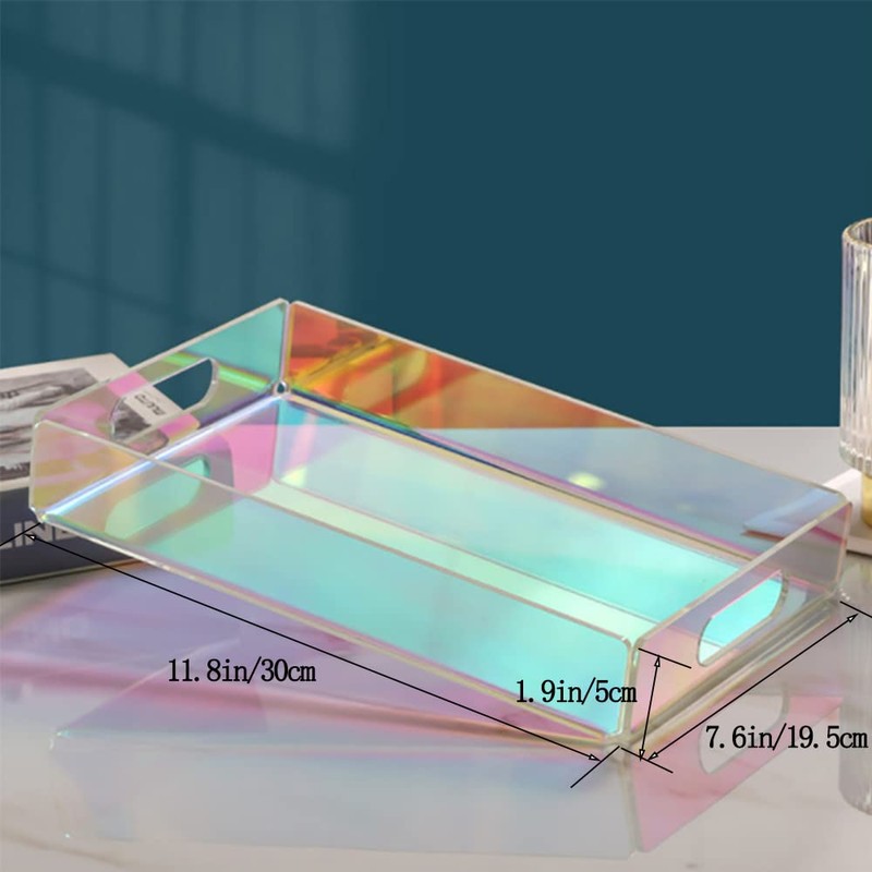 Singring Acrylic Makeup Tray Iridescent Organizer Box with Handles Rainbow Storage Colourful Decorative Tray for Vanity Drawer (11.8x7.6x1.9 inch)