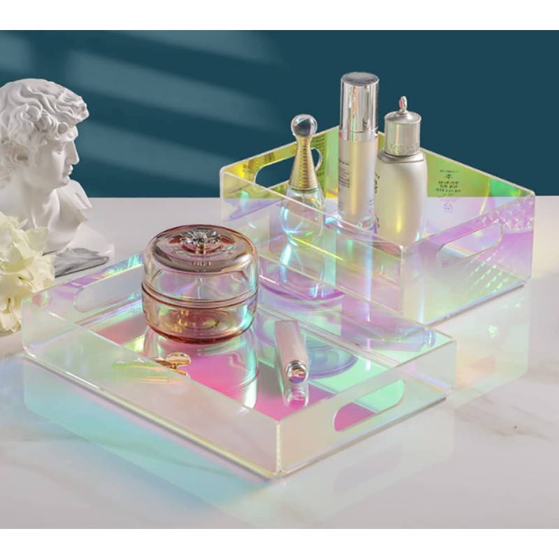 - COLORFUL AND USEFUL: The rainbow-colored acrylic tray is colorful, making your beauty products look more luxurious and beautiful. What's more, the transparent material is convenient for displaying and organizing small objects and other decorative items to keep the items in order.