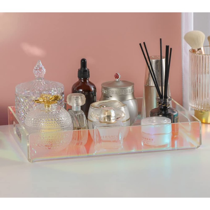 - PERFECT DESIGEN: Our colorful acrylic tray is specially designed for storing cosmetics and skin care products. In addition, the hollow handle design is simple and practical, so it can be easily grasped and moved to the position you want.