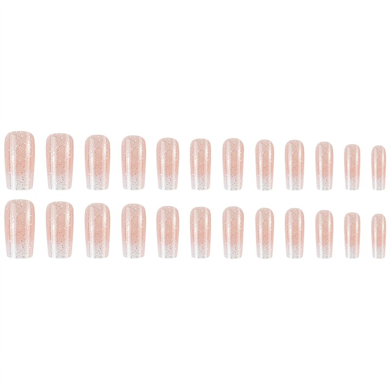 SINHOT Square Press on Nails Long - White Gradient Fake Nails Glossy Glue on Nails Bling Glitter Acrylic Nail Supplies Squoval Artificial Nail Art Stick on False Nails with Design DIY 24 pcs