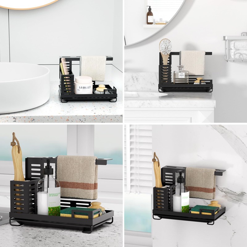 - LARGE CAPACITY KITCHEN ORGANIZER: This 24.7cm x 14.5cm organizer can hold a large number of kitchen supplies, such as dishwashing detergent, dishwashing brushes, pot washing brushes, sponges, etc., and there is also a horizontal bar for drying dishcloths.