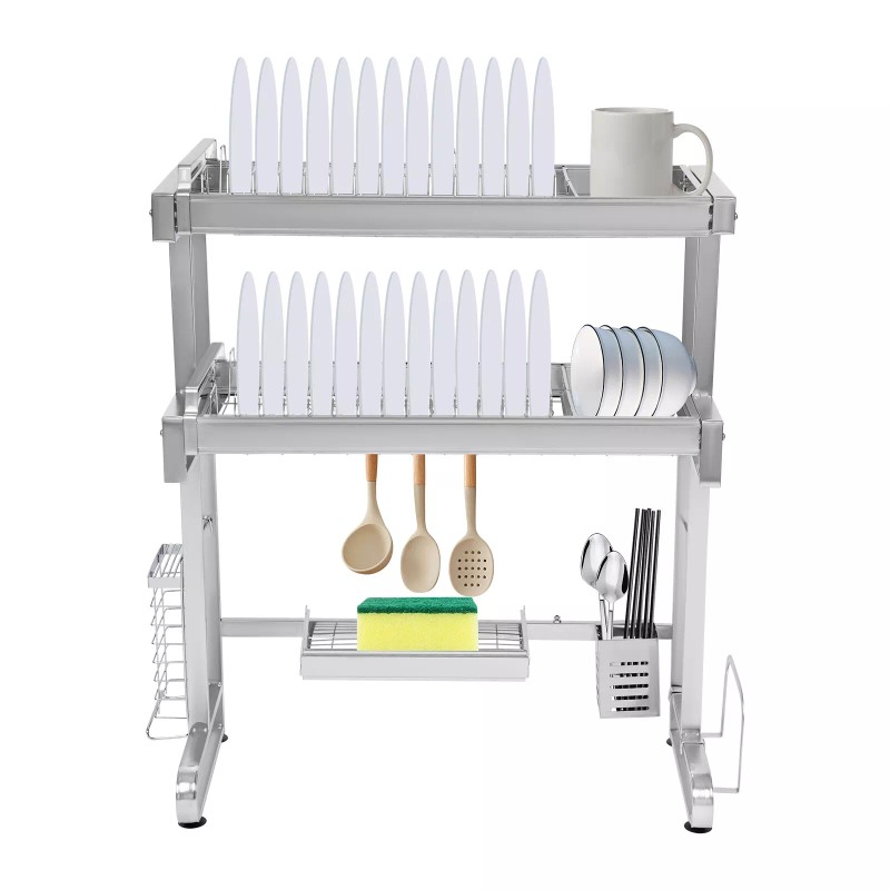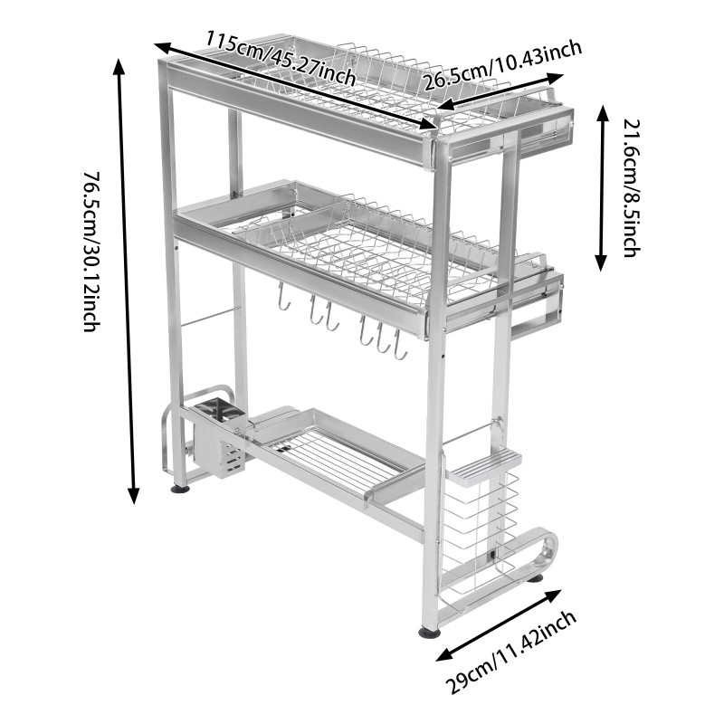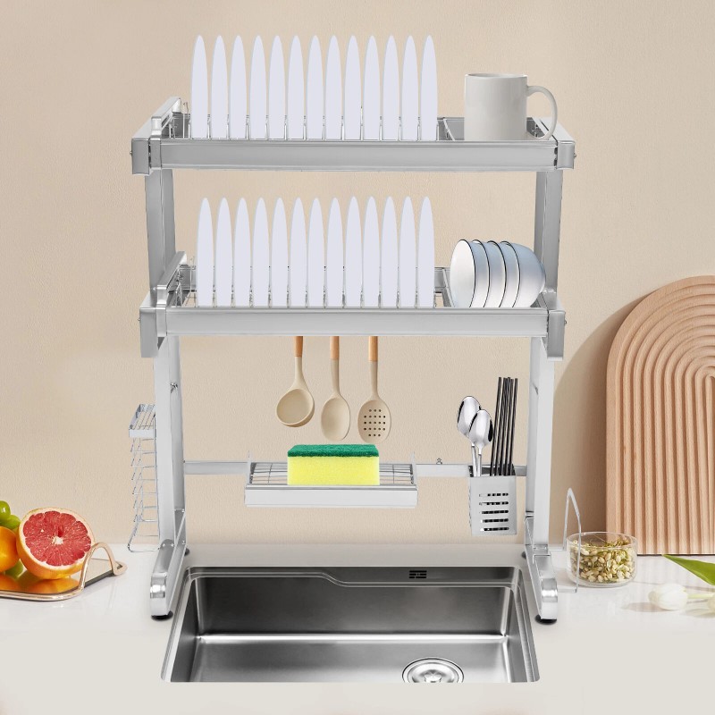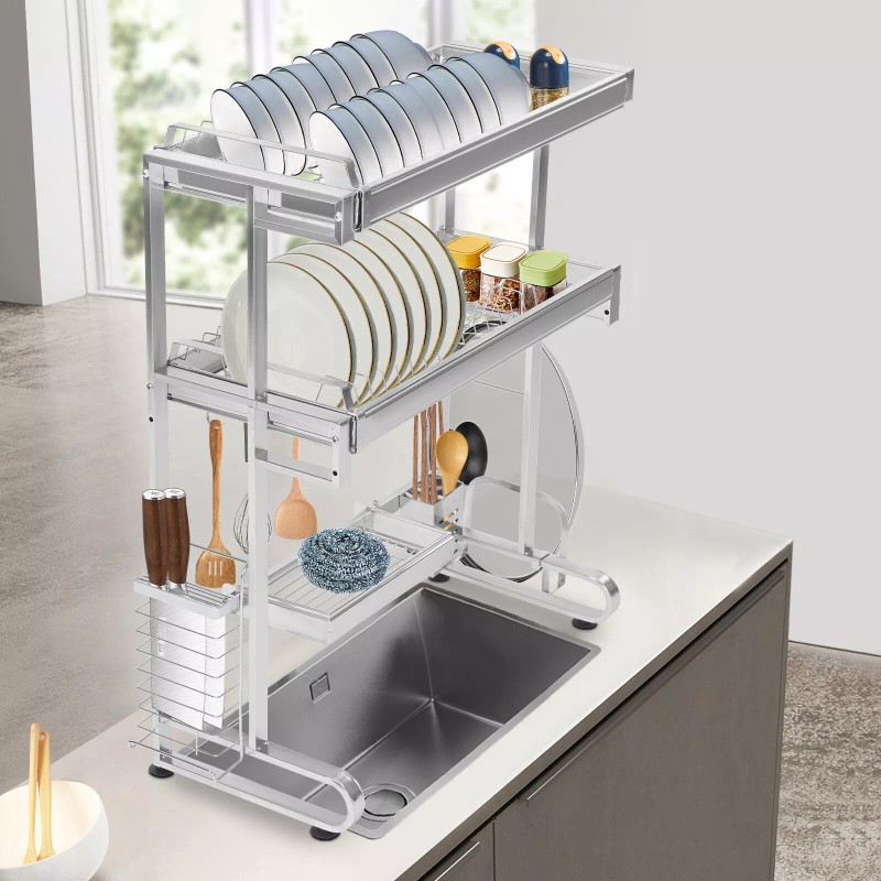Made of stainless steel, the dish drying rack is an efficient utensil storage tool designed for modern kitchens. It combines an innovative retractable design with practical functionality and is designed to provide users with a convenient and hygienic solution for drying dishes, making the kitchen tidier and more organized.