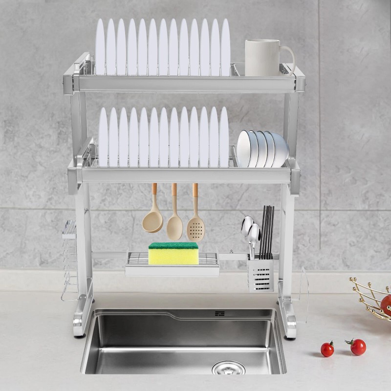 Sink Dish Drainer Double-layer Retractable Sink 304 Stainless Steel Silver