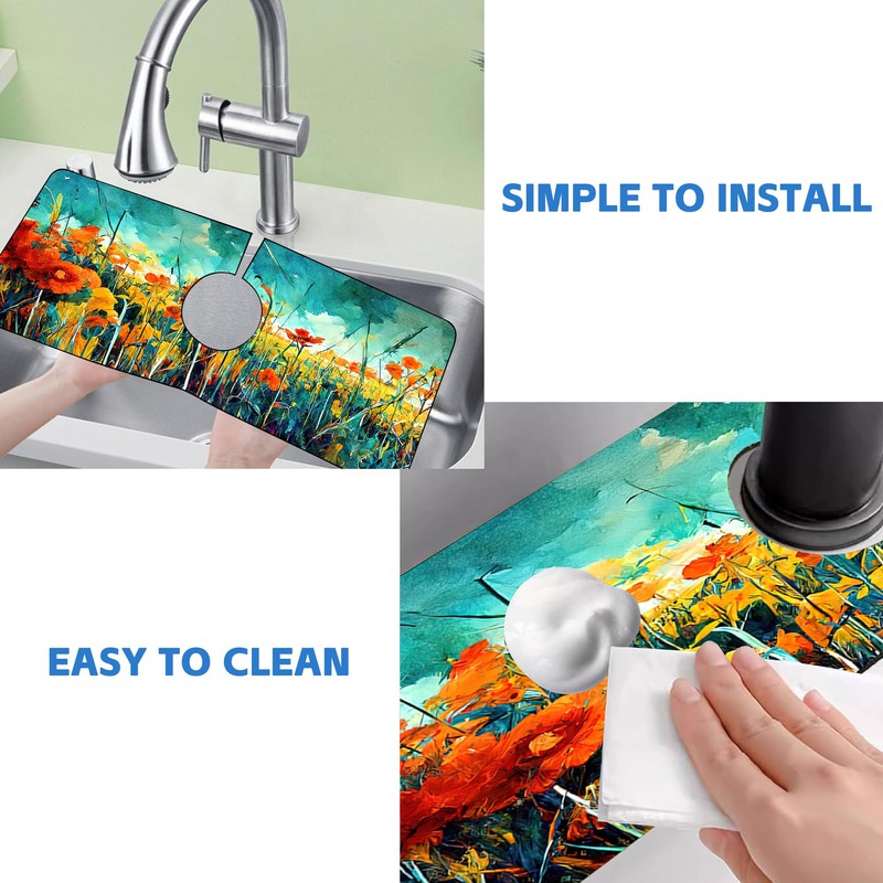 - Appearance: Faucet draining mat designed in an illustration style adds a unique charm to your bathroom or kitchen with its elegant and eye-catching.