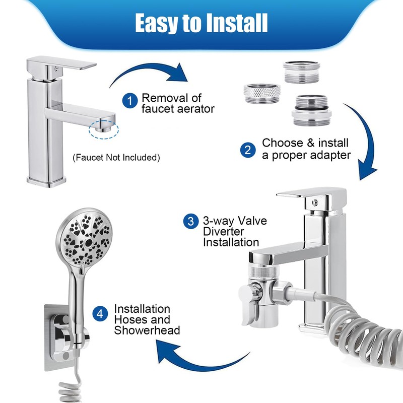 - 【Easy Installation】Our faucet sink sprayer attachment are designed to be easy to install on your own, no plumber required! Simply remove your original faucet aerator and install our faucet water diverter and showerhead to easily and economically update your home's faucets.