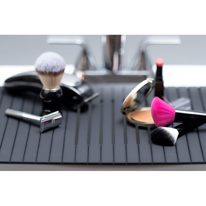 - Extra Counter Space: Prevent of your makeup and other products ending up in the sink while getting ready. This bathroom countertop organizer mat creates room for storing all your essentials. Sleek design with no ridges or holes to prevent your brushes and other cosmetics from falling into the sink.