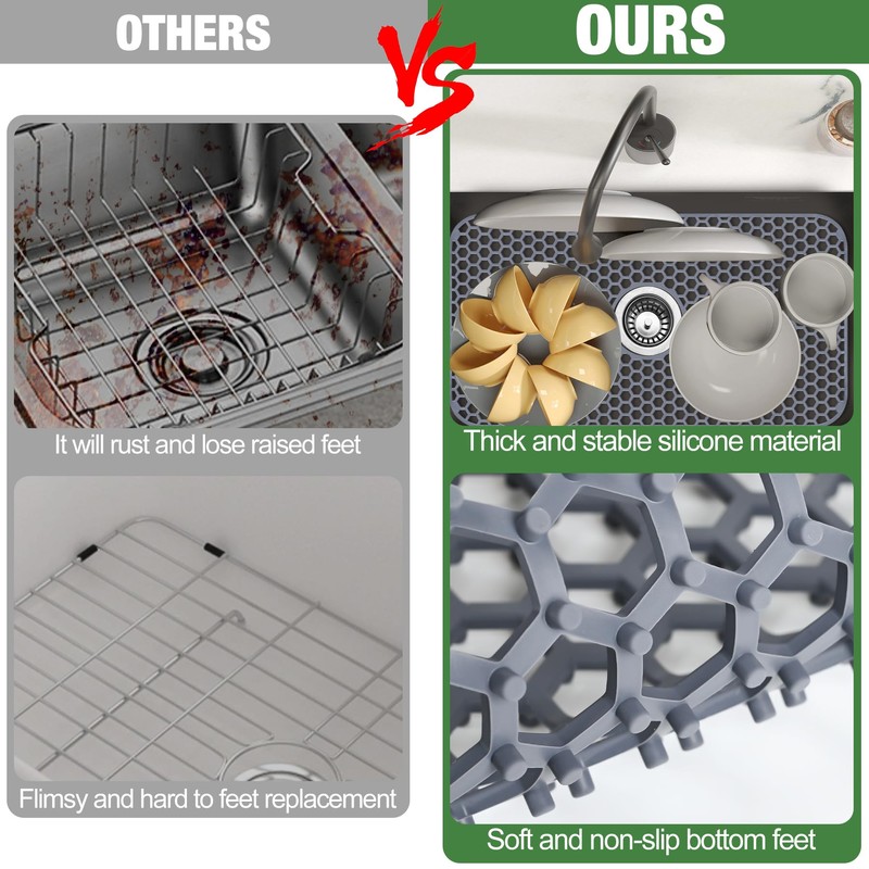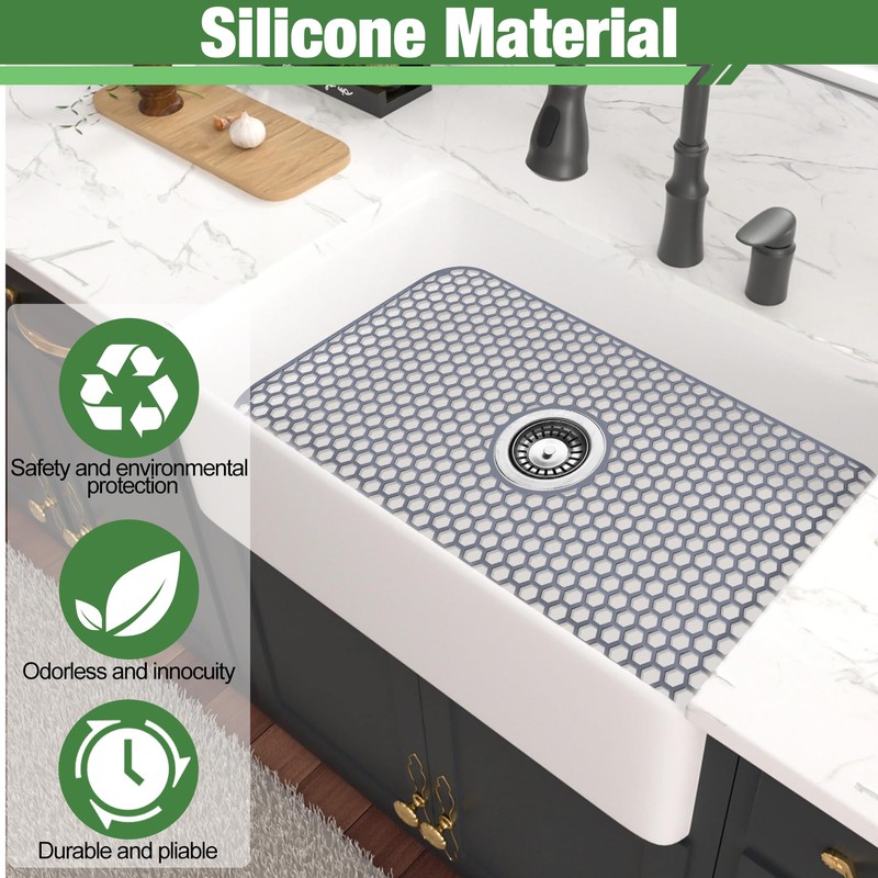 - 【Size of Kitchen Hollow Sink Mats】This kitchen sink mats features a delicate design, suitable for various types of sinks and meeting the requirements of different kitchens. The size of the sink mat with Center Drain is 26"×14". All kitchen sink protector mats have been precisely measured to ensure a perfect fit for sinks, enhancing the kitchen experience
