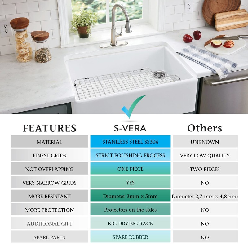 - 👌 EASY HANDLING MUST FOR YOUR SINK : The S-VERA 6449 sink protector made in ONE PIECE is a simple and effective solution to protect your sink against scratches, scrapes or damage; being manufactured in one piece makes it easy to handle inside and outside the sink, avoiding problems such as overlapping grids or misalignments when pots or other utensils are placed.