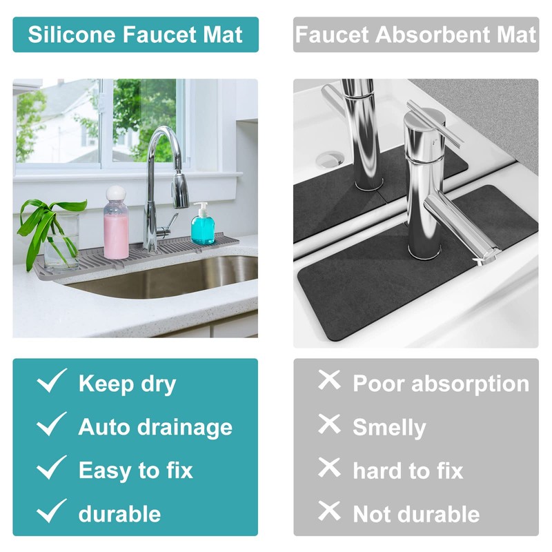 - 【Multifunction】It is not only a faucet splash guard mat, you can put your soap, cup and hand-washing fluid on the silicone faucet mat.