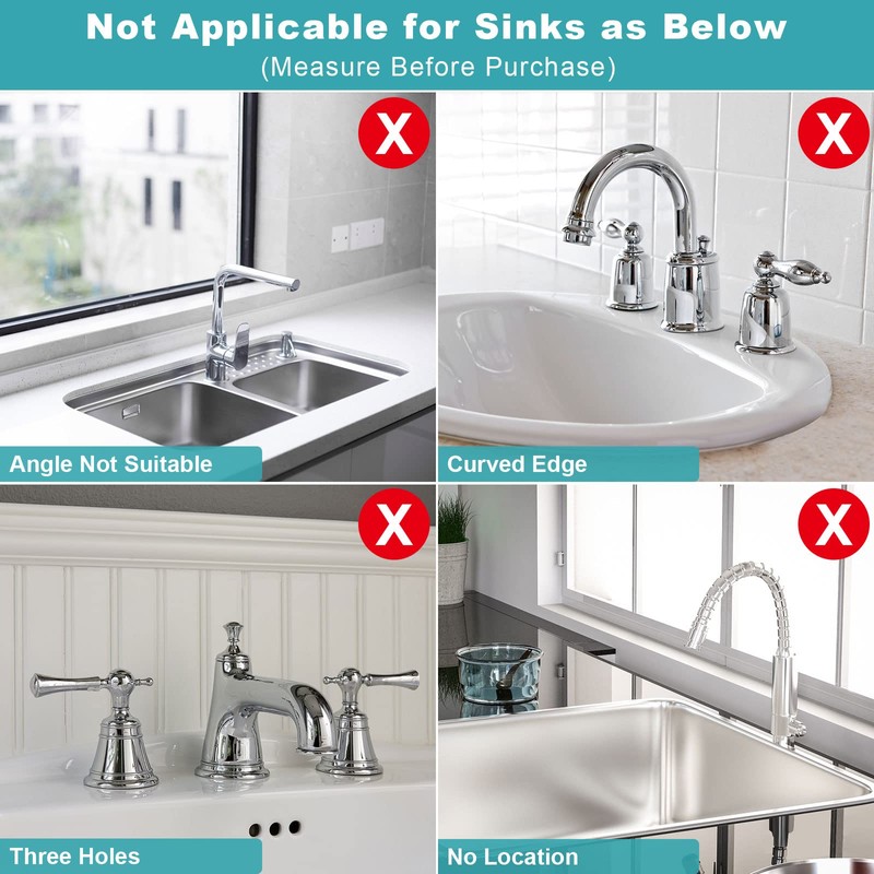 - 【Flexible and Adjustable】The faucet catch tray has a unique adjustable design with an adjustable middle section of up to 2.5 inches to accommodate faucets of different diameters. The folding design of the sink splashback behind the faucet allows the 1 in pad to be attached directly to the wall.