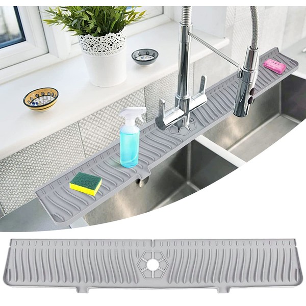Sink Splash Guard, 30" Sink Faucet Mat, Faucet Splash Guard, Slope Upgrade Silicone Faucet Handle Drip Catcher Tray for Kitchen Countertop, Bathroom, Farmhouse(Gray)