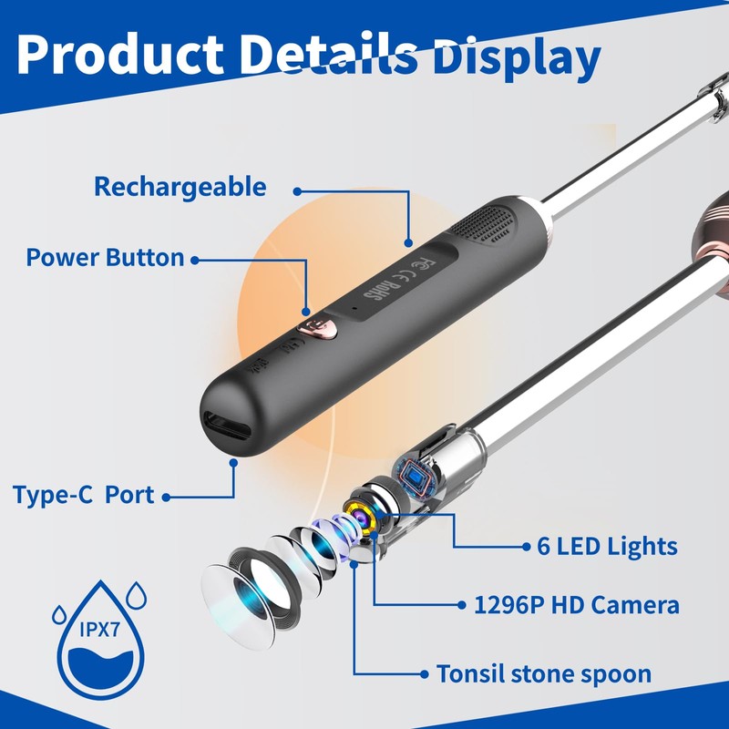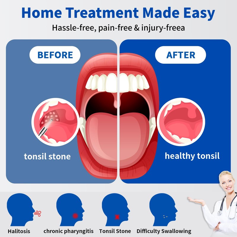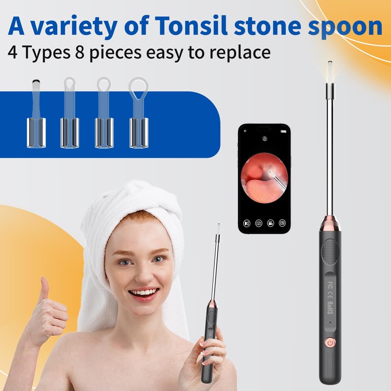 - Introduction of the new tonsil stone remover:This tonsil stone remover has 360° wide angle view, 6 LED lights and 1080P high resolution, enable you to see every corner of the oral clearly. Built-in LED light, clear sight of the operating area also helps eliminate the gag reflex. Easily get rid of those pesky foul-smelling tonsil stone with this tonsil stone remover kit and put an end to your bad breath!
