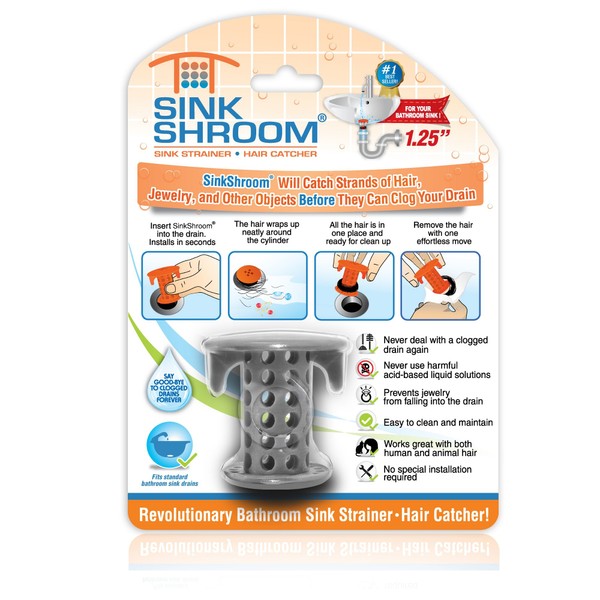 SinkShroom The Revolutionary Sink Drain Protector Hair Catcher/Strainer/Snare, Gray