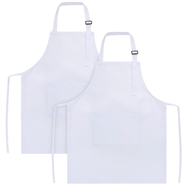 Sinland Kids Apron Children's Chef Apron for Cooking Baking Painting 2 Pack (White, S)