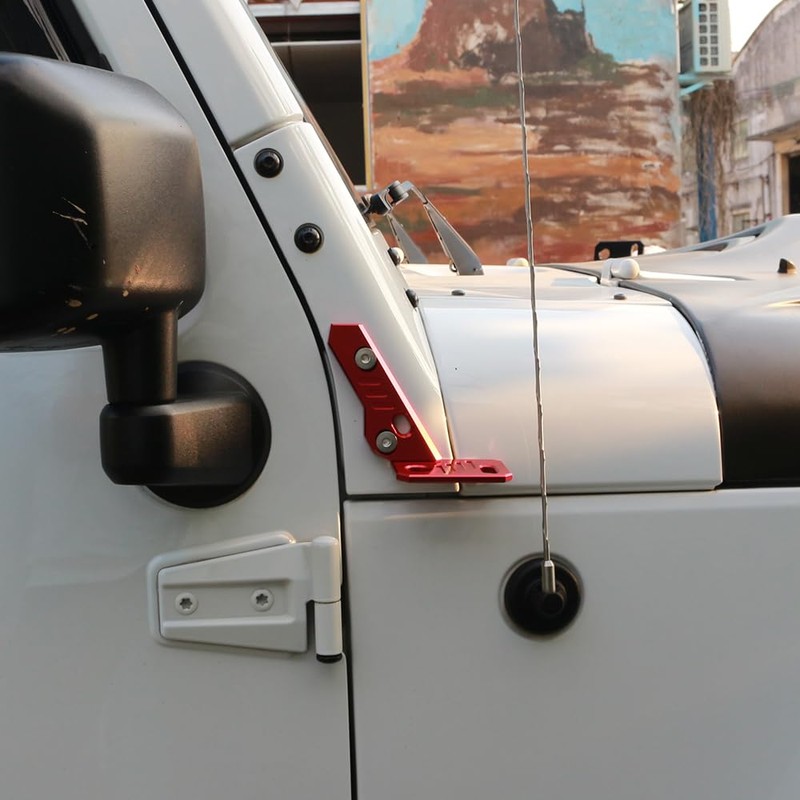 SINLIRU JK CNC 2 in 1 Brackets CB Radio Antenna Mounts A-Pillar LED Pod Light Bracket A-Pillar Flagpole Stand Mounting Holder,Only 2PCS Red Mounts
