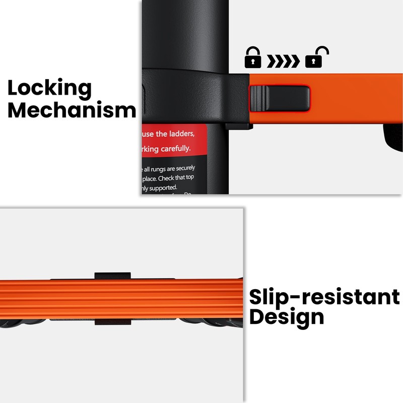 - 【Safety & Stability】:Lightweight yet strong, this extension Ladder with a weight capacity of up to 330lbs. Every step has a double height-locking latch that opens and closes individually for anti-pinching your fingers or hands. It also allows the user to adjust to different heights without effort.