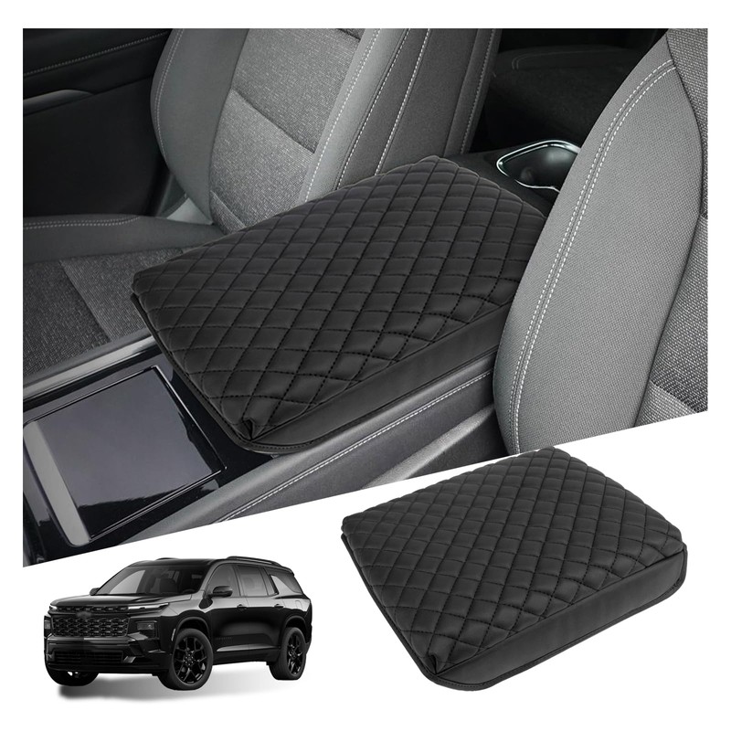 Sinminou Center Console Armrest Cover Compatible with 2024-2025 Chevy Traverse Interior Accessories, Leather Middle Console Lid Pad Protector (Black)