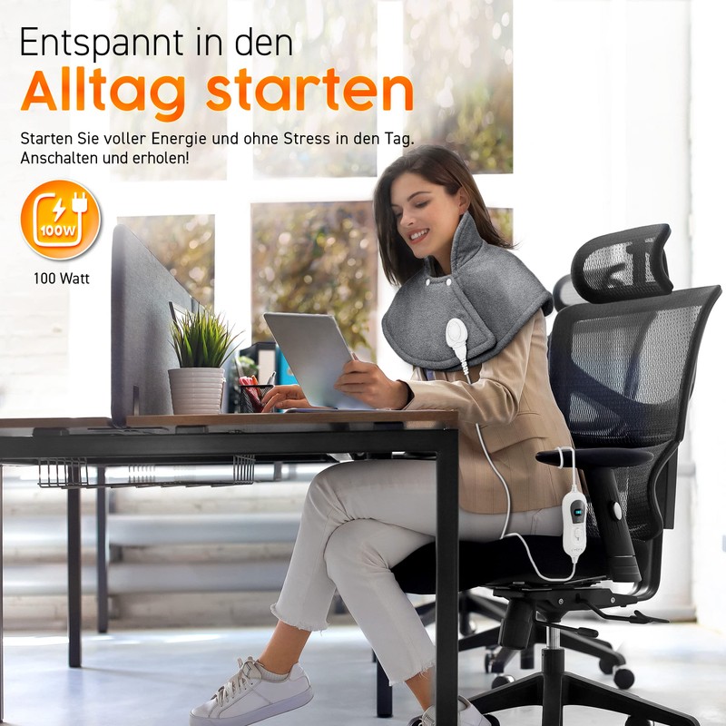 - For everyone – 3 temperatures: the electric shoulder heating pad has 3 different heat settings, an illuminated remote control and 100 W power, which heat up to the desired temperature within 10 minutes.