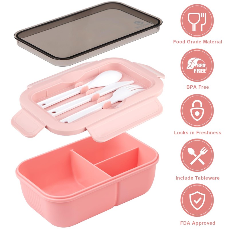 - 【Praktische Lunchbox mit 3 Fächerns】 Die Bento Lunchbox hat 3 Fächer, dient dazu Hauptgericht, Obst, Snacks oder Soße separat zu servieren. Besteck ist im Lieferumfang enthalten und passt leicht hinein. Dies ist eine sichere, umweltfreundliche und wiederverwendbare jausenbox.