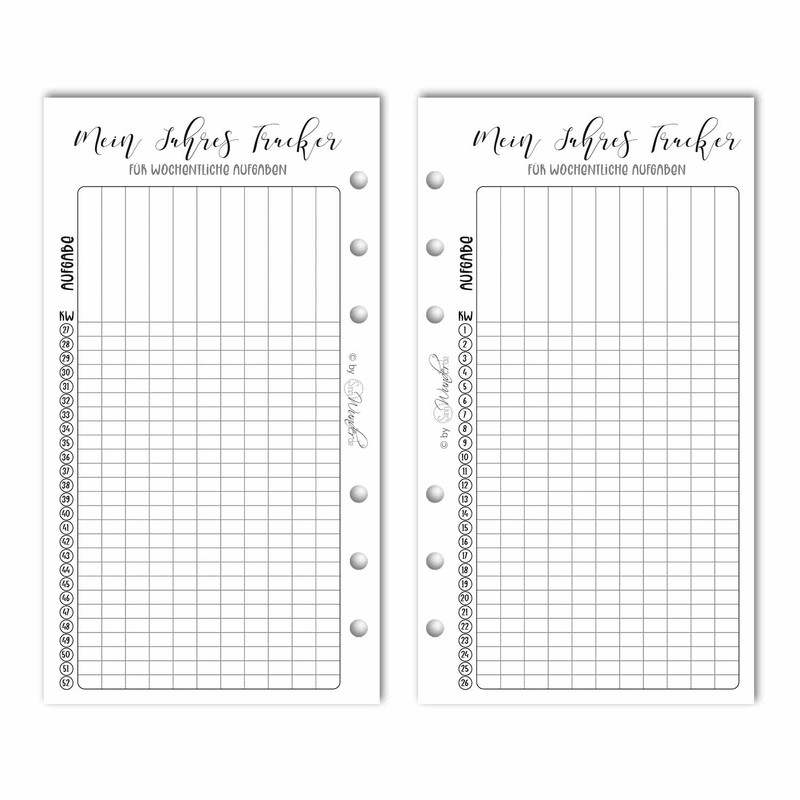 Track all tasks that need to be completed once a week, or even every 2 weeks with our weekly task year trackers. Whether it's watering the plants, cleaning the dog bowls or cleaning the coffee machine. You can also create lists for different areas in your ring planner and they help you organise the household better. You keep track and many household appliances thank you from the heart when it gets its deserved weekly maintenance.