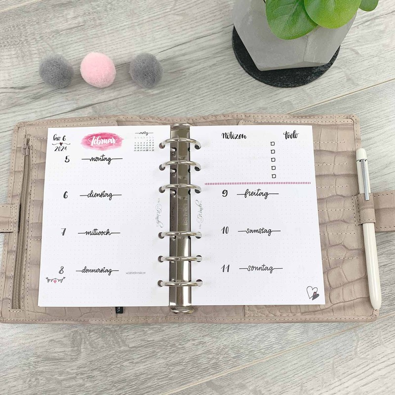- Our tip: combine the weekly calendar with our "TinySinn" notepads, note paper in different rules and address inserts to complete your calendar setup