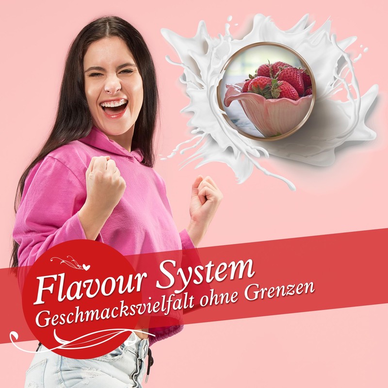 - Taste explosion – with only 3 g flavour powder and a 200 g yoghurt, cereal, quark, or protein shake, your favourite food becomes a taste experience.