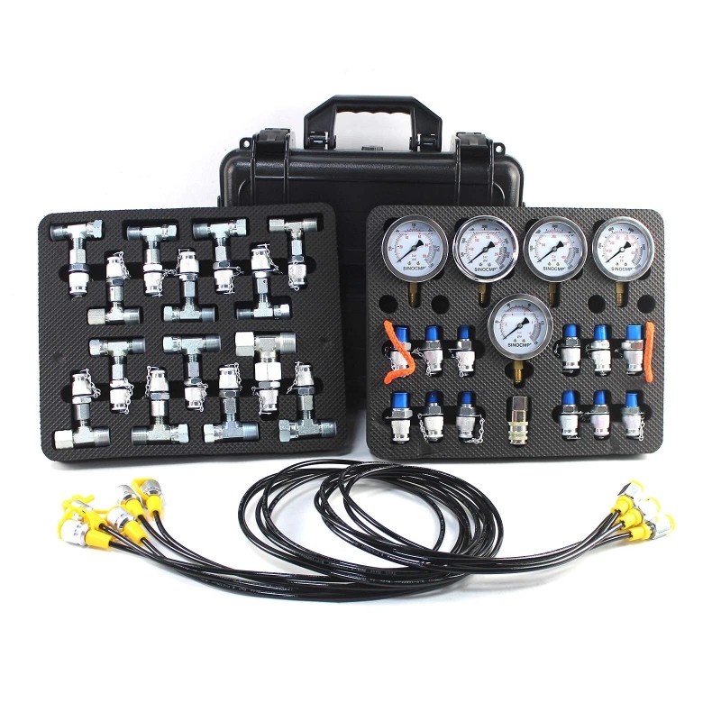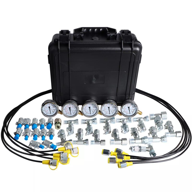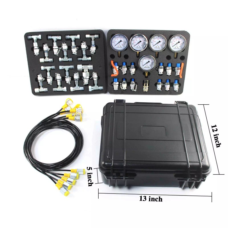 SINOCMP Hydraulic Pressure Gauges Test Tool Hydraulic Gauge Kit w/5 Gauges Fit Excavator