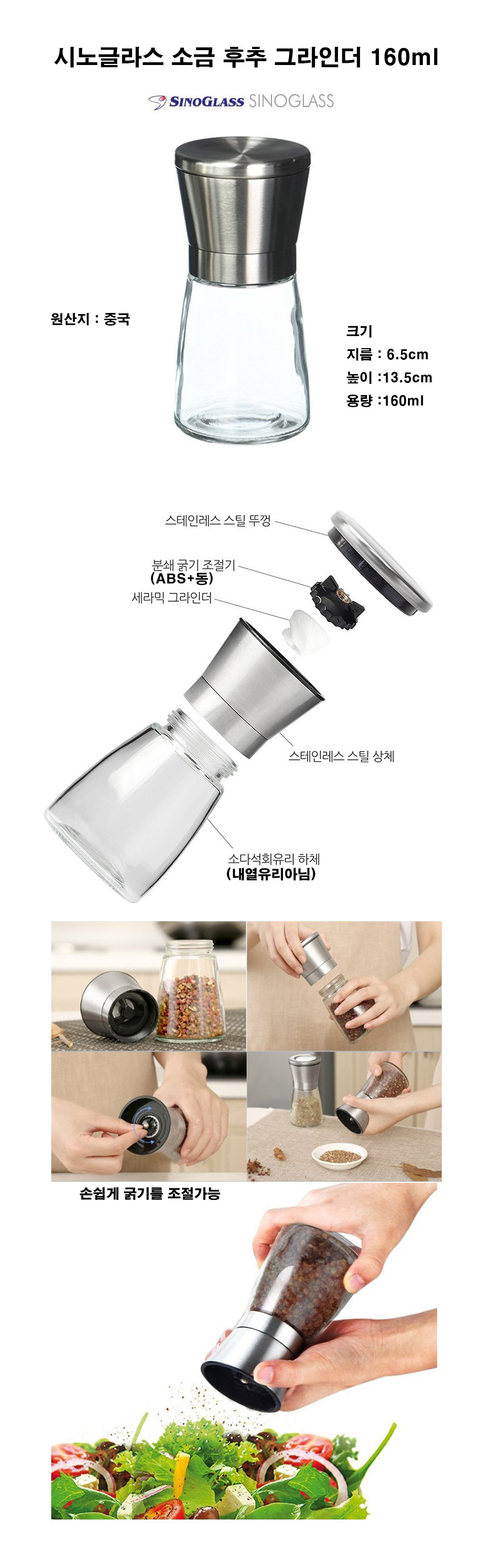 Sinoglass salt pepper grinder 160ml 1p/multipurpose grinder / 시노글라스 소금 후추 그라인더 160ml 1p/다용도 그라이더