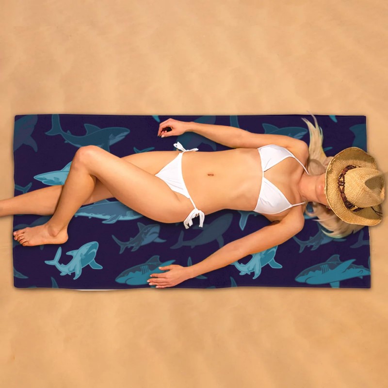 SinSenMa Navy Blue Shark Beach Towels for Kids Adults,Travel Foldable Lightwe...