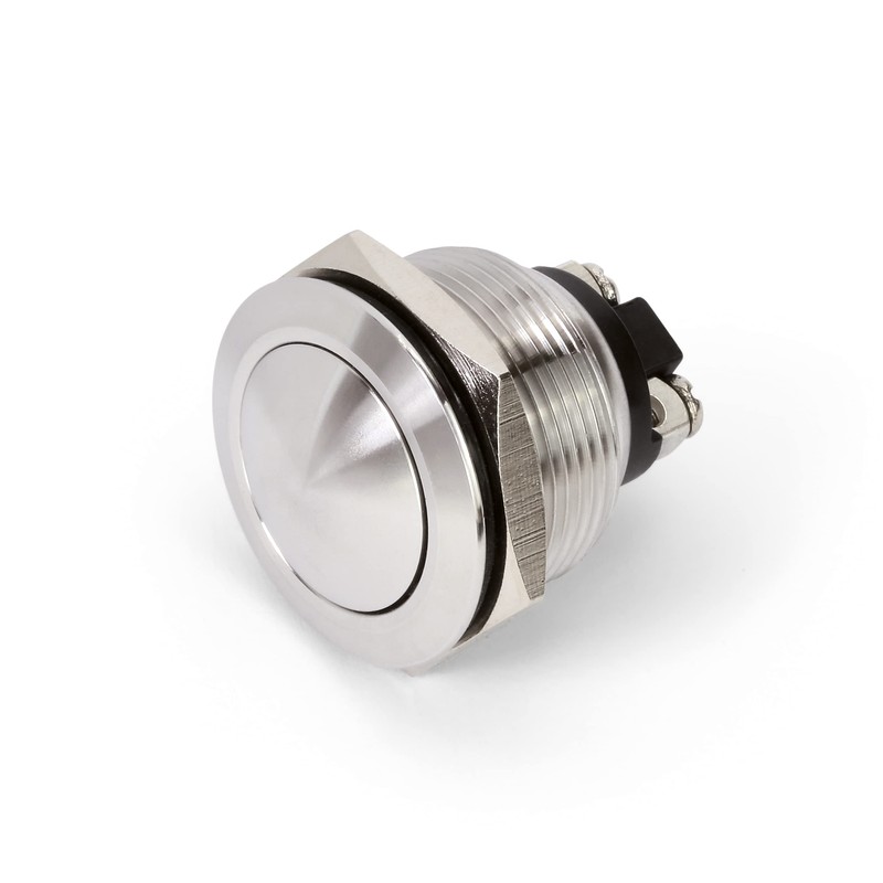 • Metal button, 22 mm diameter, 250 V, 5 A, screw connection, button head round