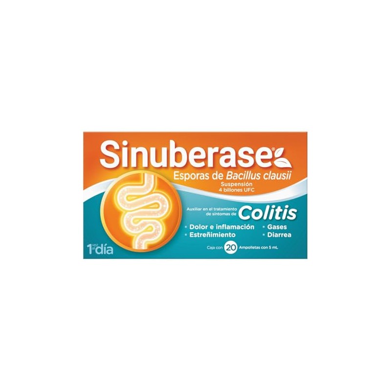 Sinuberase Probiticos en Suspensin Bacillus Clausii 4 Billones UFC 20 Ampolletas de 5 ml. Alivio Prolongado para la Colitis, Desde la Raz. Alivio de