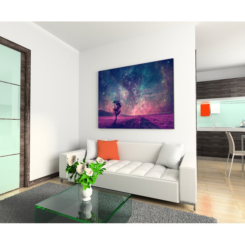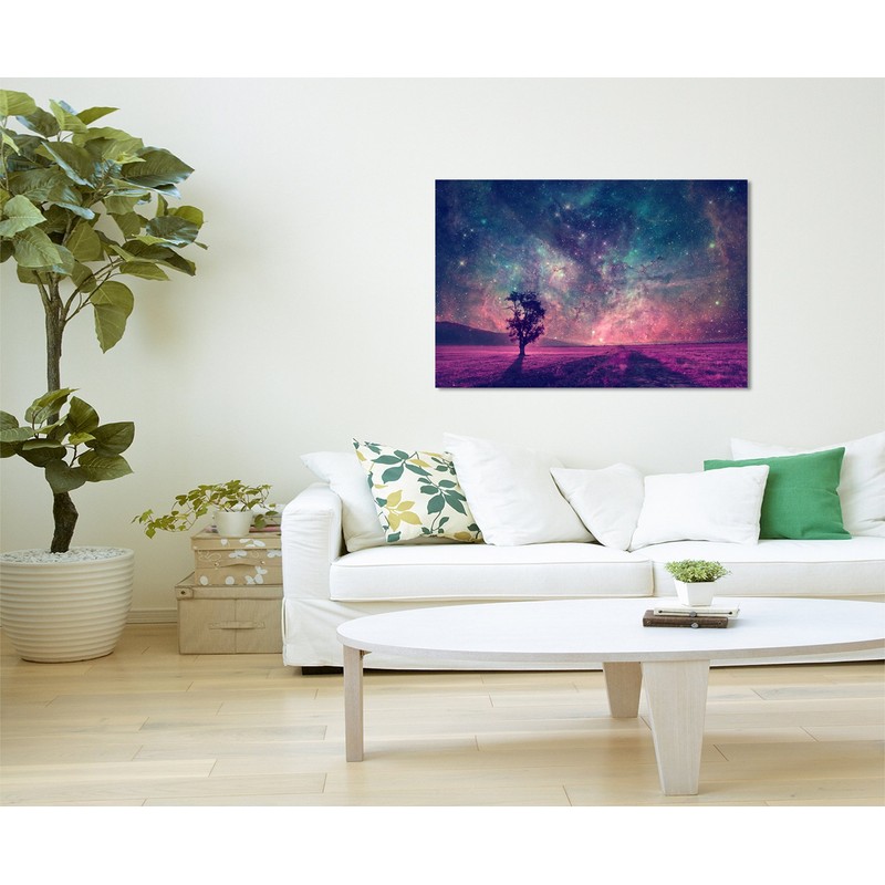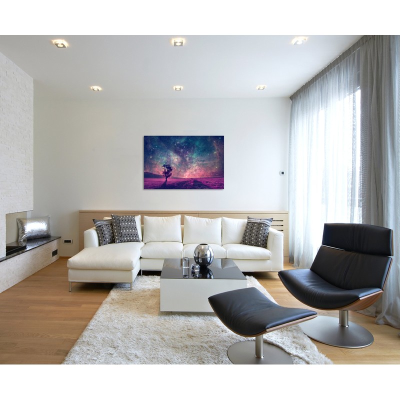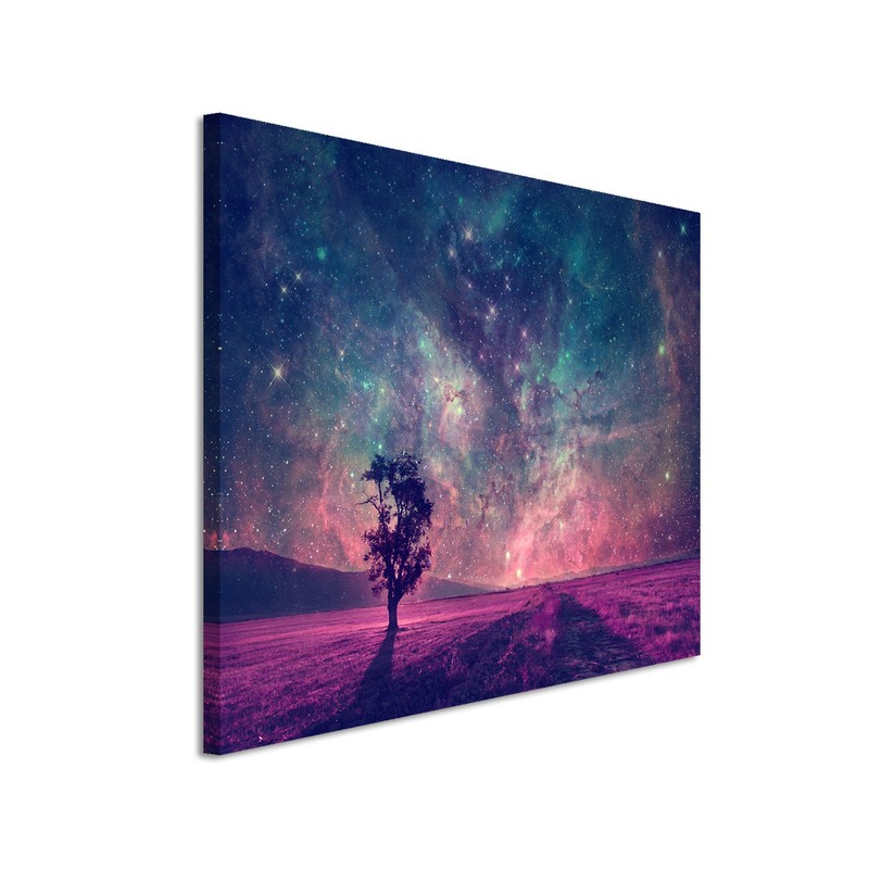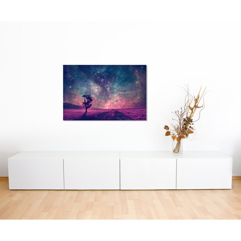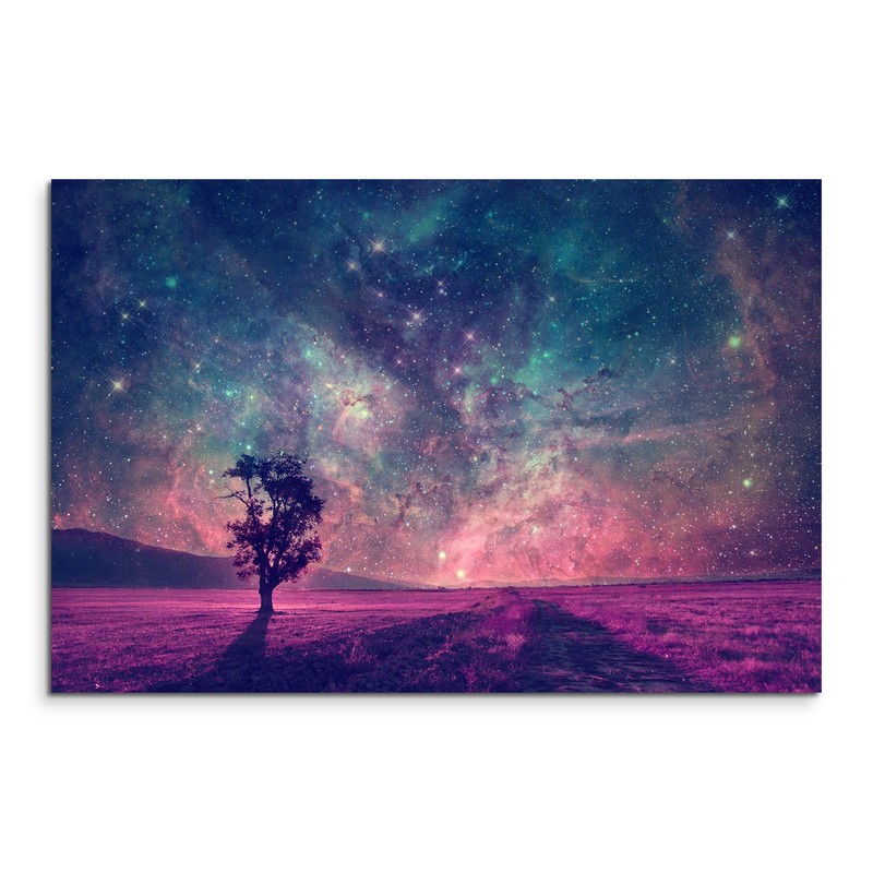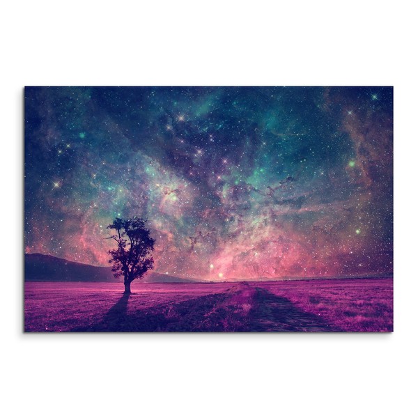 Sinus Art Wall Picture 120 x 80 cm Artistic Photography - Fantastic Milky Way with Tree on Canvas for Living Room, Office, Bedroom, Holiday Home and Much More, Razor Sharp, Top Quality