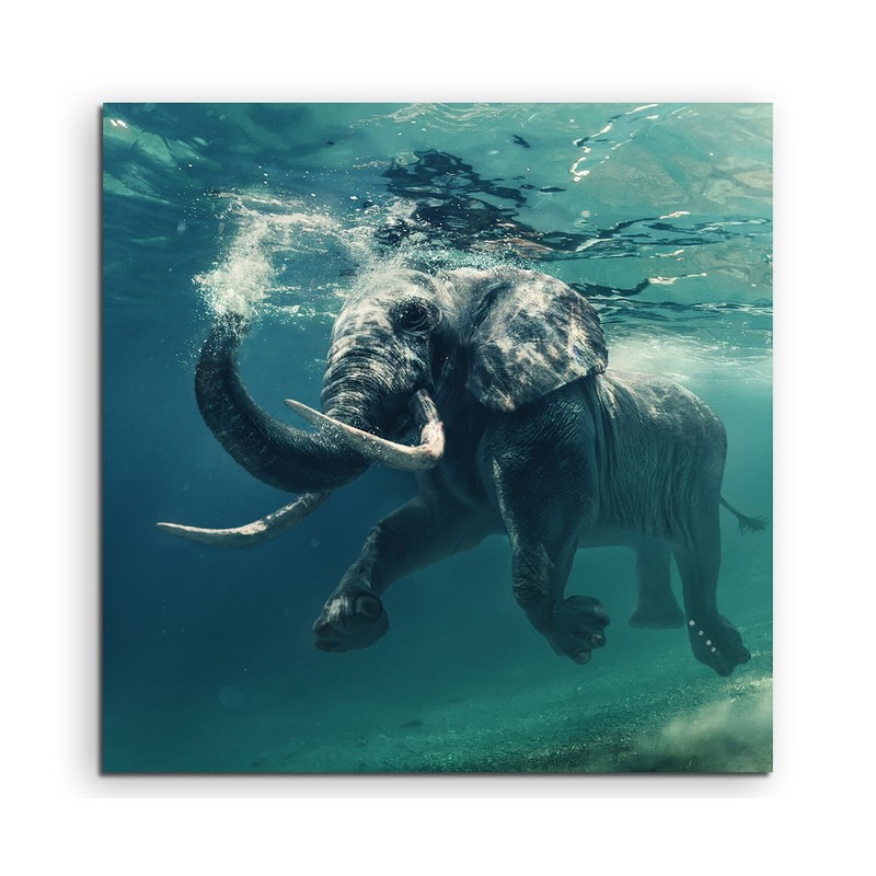Sinus Art Wall Picture 90 x 90 cm Animal Photography - Floating Elephant Underwater
